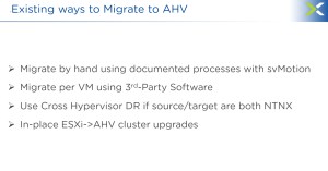 - Migrate VMs from ESXi to AHV (Orchestrated via vCenter Server, not ESXi host direct)