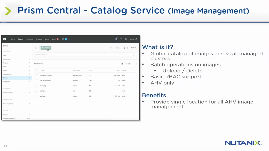 - Prism Central Catalog Service (Image Management)
