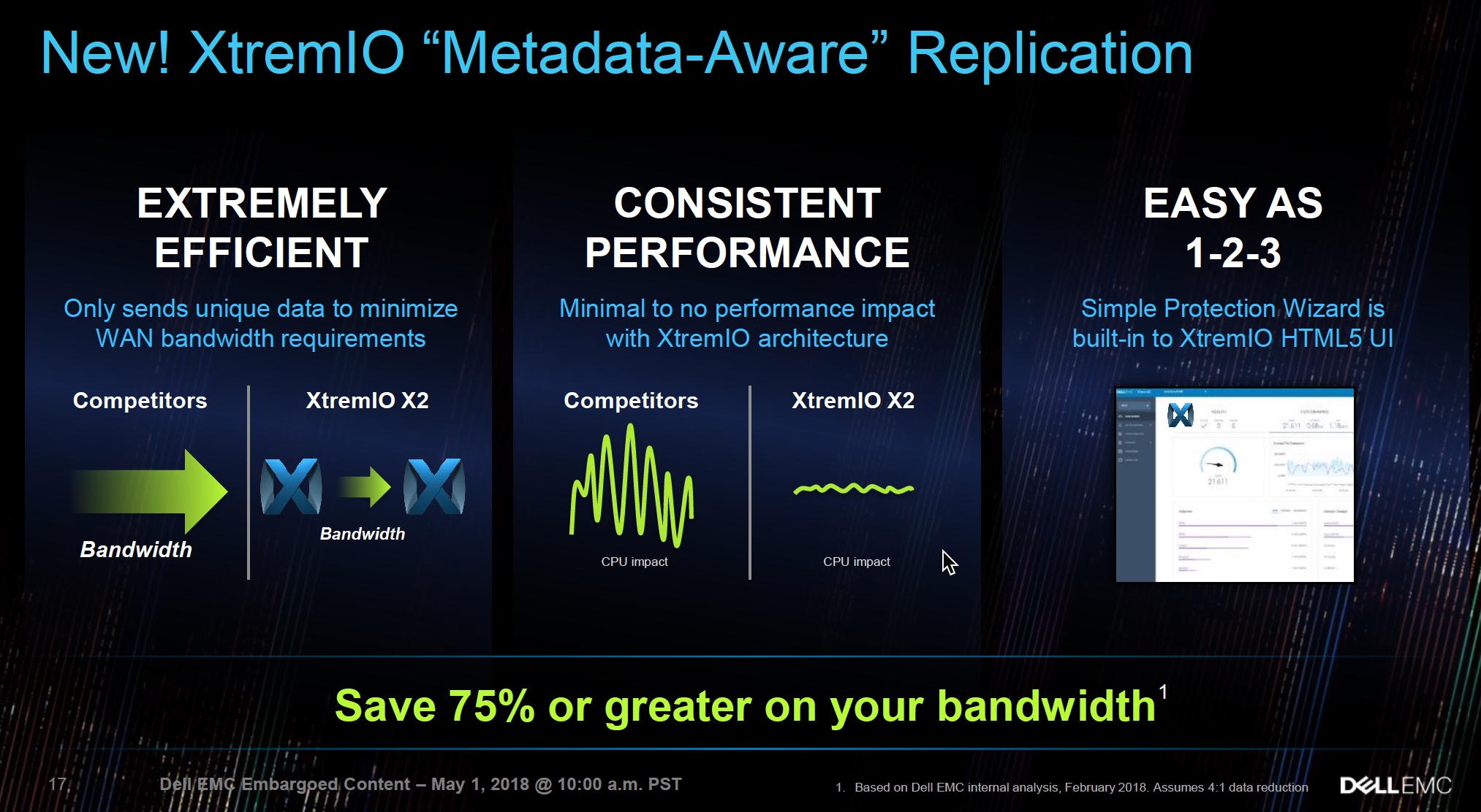 Dell Technologies World – XIO X2 supports replication Dell EMC has announced the XtremIO X2 will now support replication (metadata aware). This was always an annoying limitation of XtremIO, so it is great to see that hole plugged. Screenshots: Share this: Share on LinkedIn (Opens in new window) LinkedIn Share on X (Opens in new window) X Share on Facebook (Opens in new window) Facebook Like Loading... Related Published by vcdx133 Chief Enterprise Architect and Strategist, 4xVCDX#133, NPX#8, DECM-EA. View all posts by vcdx133