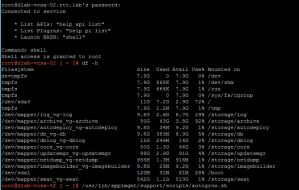 - Run the “df -h” command and verify the “/storage/archive” mount is at 90+% of use.