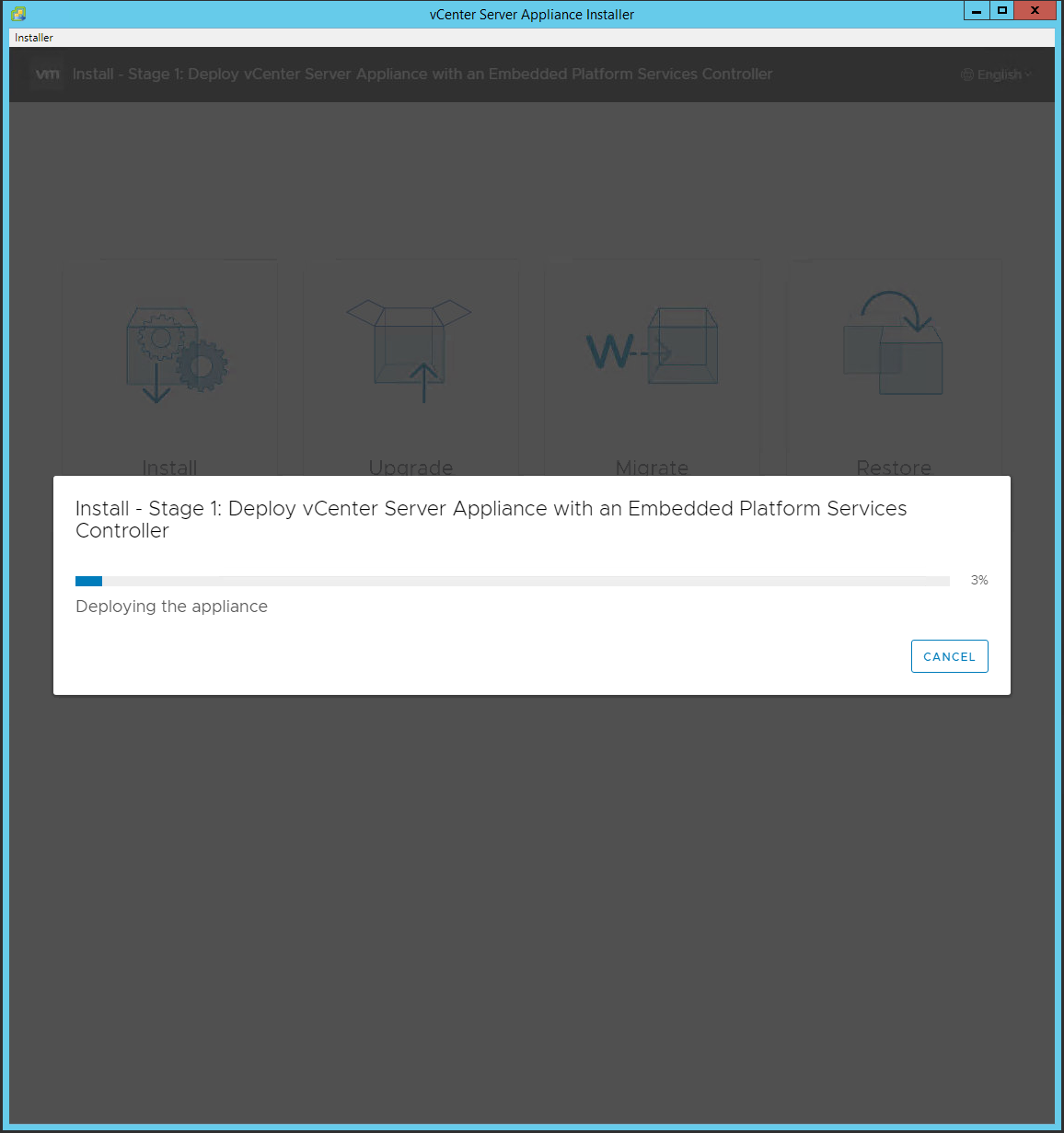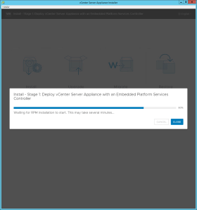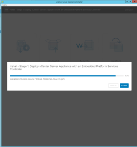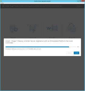 - The process of deploying the vCenter Server Appliance to the remote ESXi host or vCenter Server will begin. Be patient, this takes 30 minutes or more.