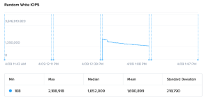 In the screenshots below (via Nutanix X-Ray), the Random Write IOPS values (this metric correlates to CPU performance) for a Nutanix on vSphere cluster with SCAv2 enabled and disabled; if you do that math it is a 10% performance drop as advertised in VMware KB 55806. SCAv1 is a 30% CPU performance impact. If your organization deems L1TF to be a vulnerability that must be mitigated, build it into your cluster sizing calculations. Also consult with Nutanix Support on the correct CVM vCPU sizing, since Nutanix Sizer and Nutanix Foundation do not account for it.